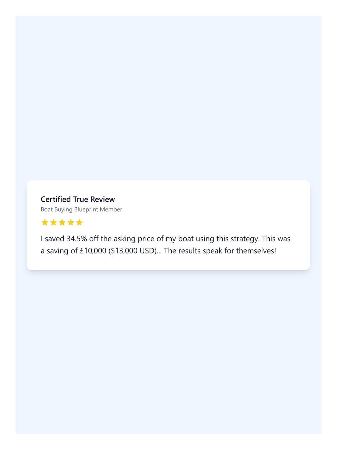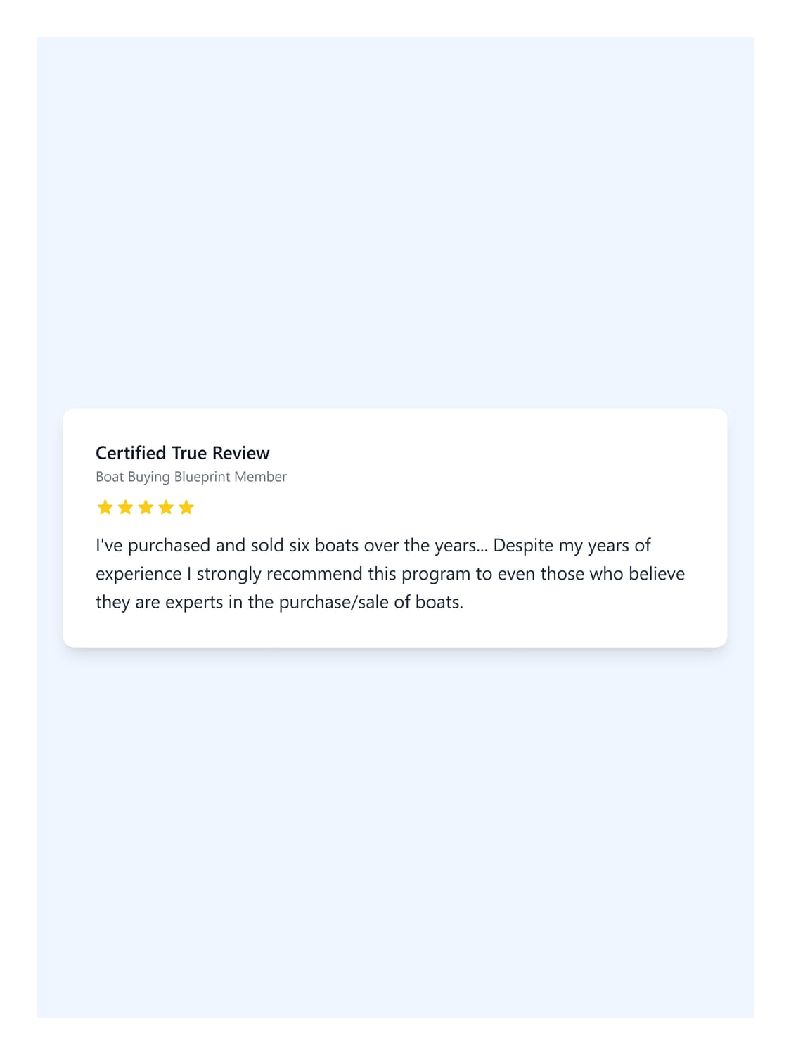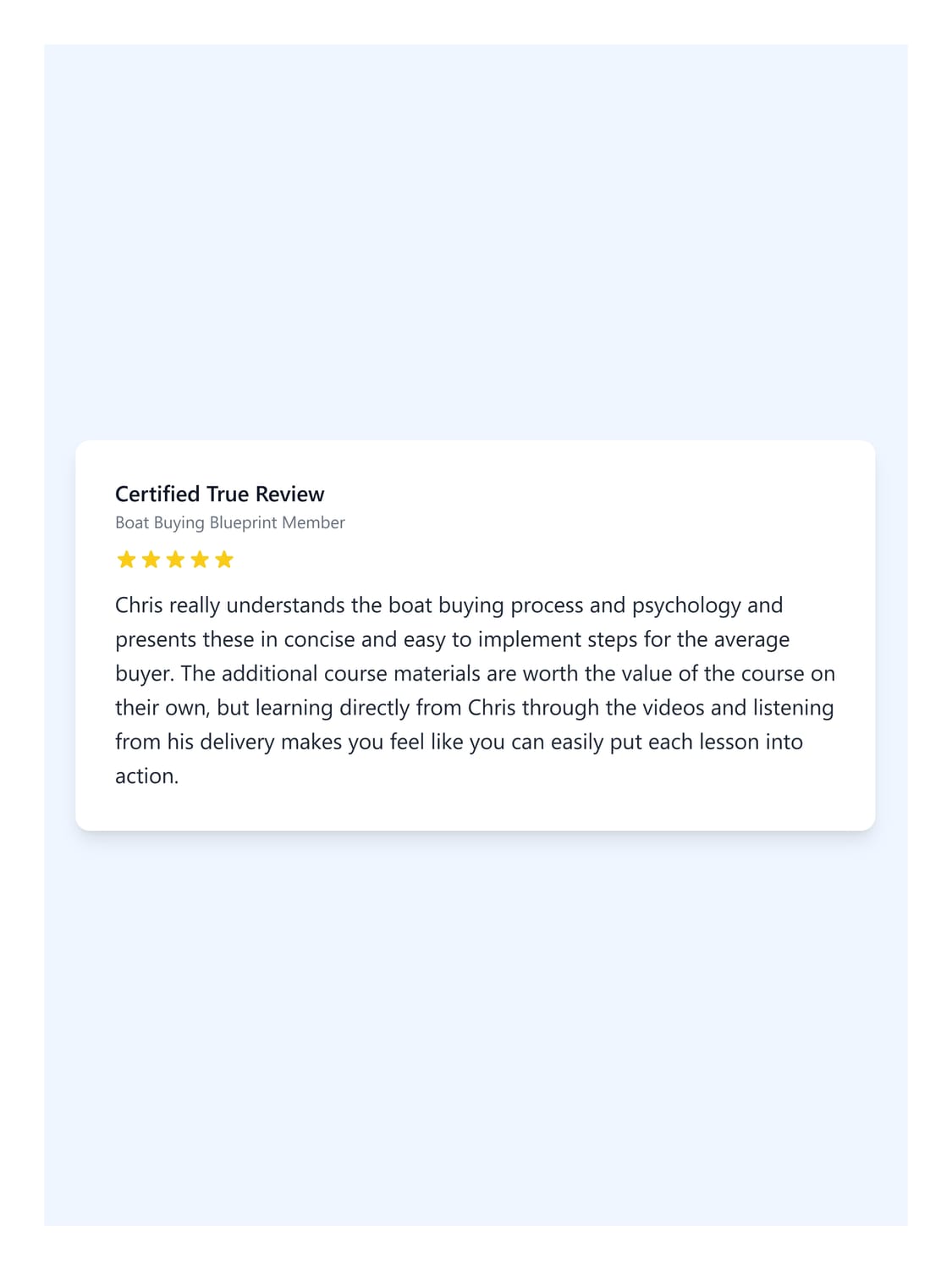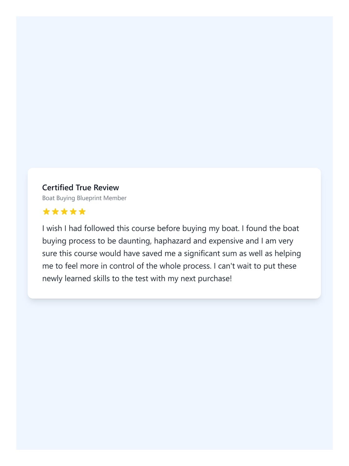 We have lots of testimonials from clients, but wish to have a page of video testimonials which we can use to help promote The Boat Buying Blueprint.